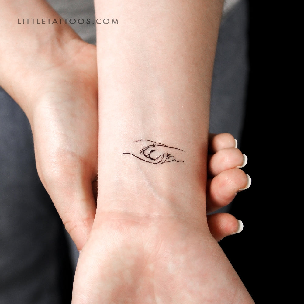 Designed in the fine line style, our paw shake fake tattoo portrays a detailed depiction of a dog’s paw, clasped gently in a person’s hand. The partnership, connection, and love between the pair are indelible in this image.