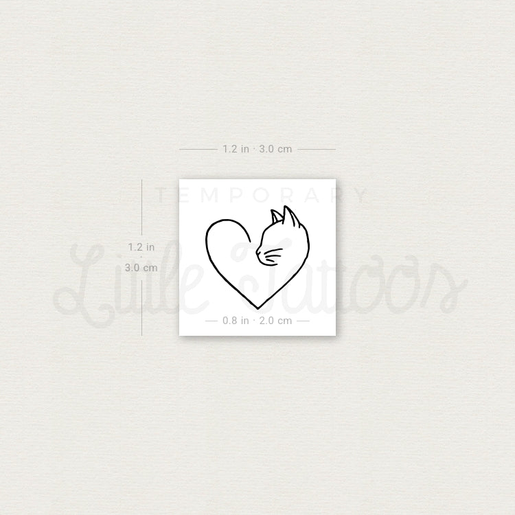 Cat Lover Heart Temporary Tattoo - Set of 3