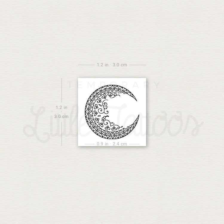 Small Ornamental Moon Temporary Tattoo - Set of 3