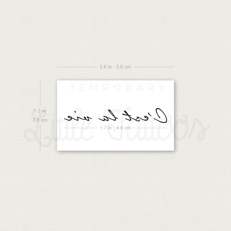Our c’est la vie fake tattoo is designed using a beautiful handwritten script, so it will add a touch of elegance anywhere you decide to place it. If you’re attracted to French expressions, be sure to check out our full collection of French quote temporary tattoos before making your final choice!