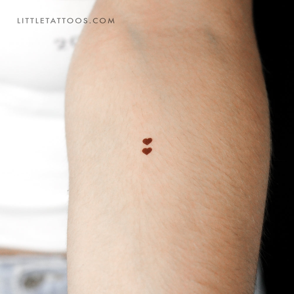Set of three Two Tiny Brown Hearts temporary tattoos.