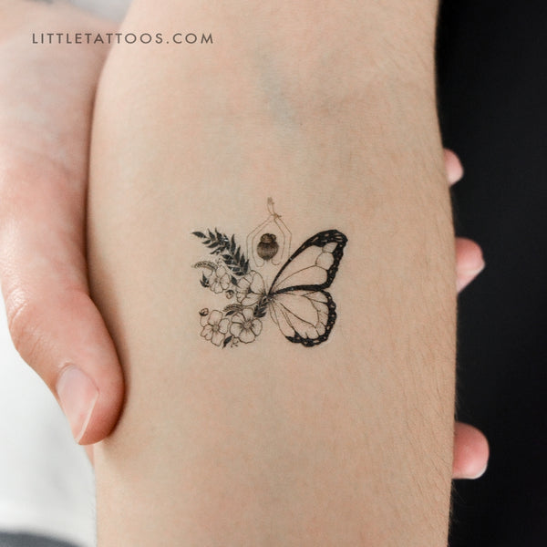 Half Flower Half Butterfly Woman Temporary Tattoo - Set of 3
