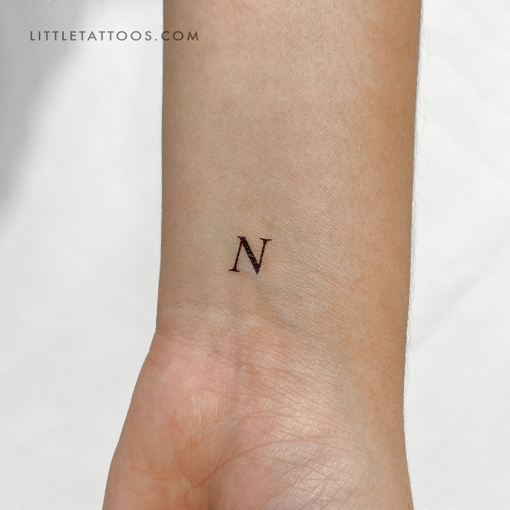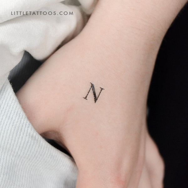 N Uppercase Serif Letter Temporary Tattoo - Set of 3
