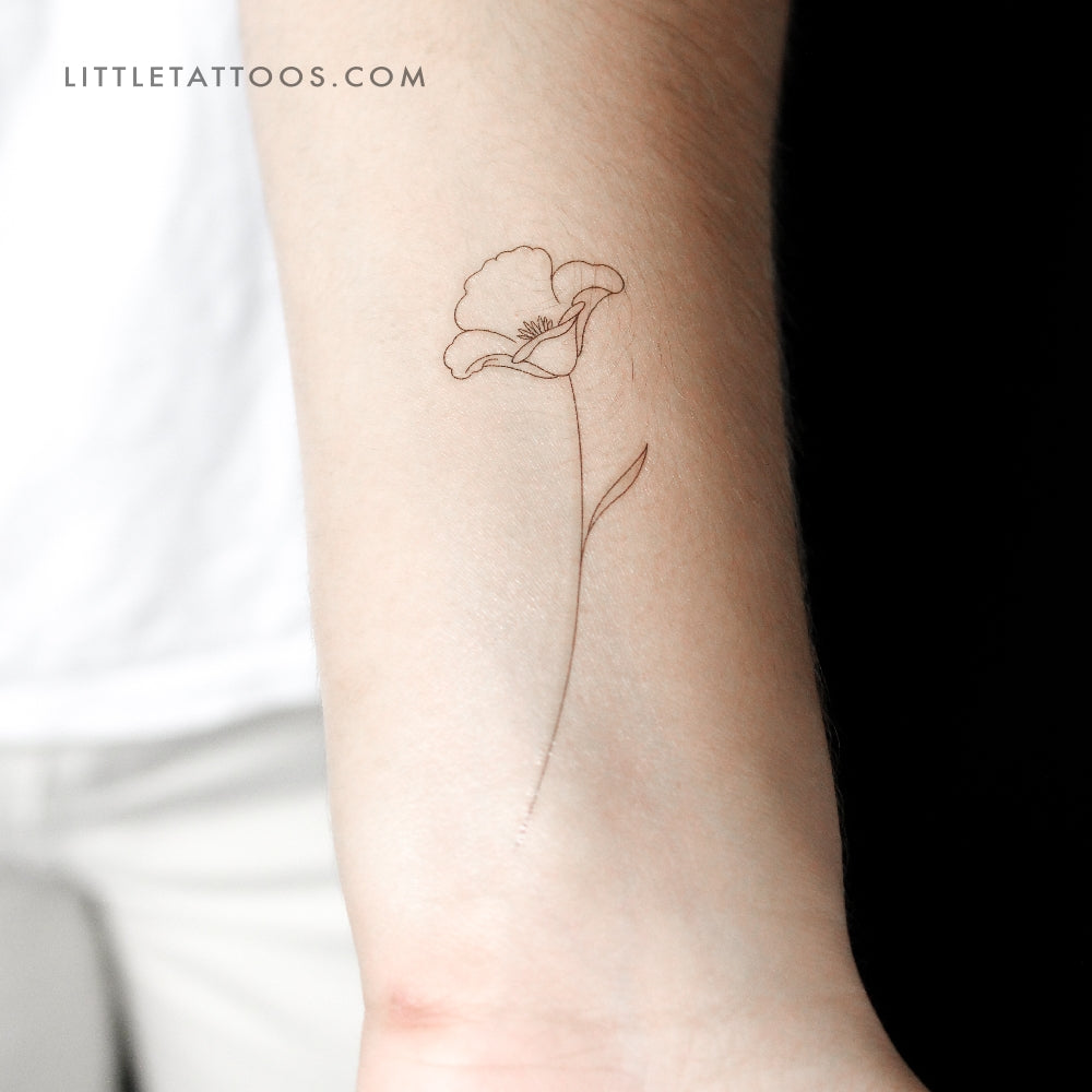 Set of three fine line style poppy temporary tattoos by Jakenowicz.
