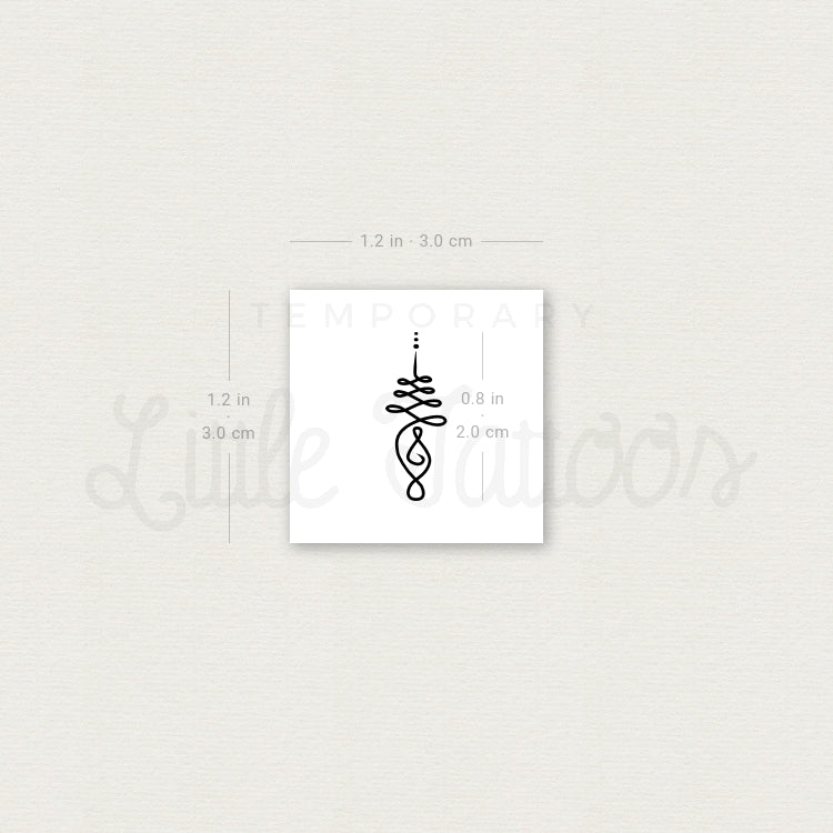 Originally a Hindu symbol that represented Shiva’s third eye, the unalome is now used in both Hindu and Buddhist religions. The design is said to be symbolic of our journey in life and eventual enlightenment. Our small unalome temporary tattoo features a single line that spirals and twirls before it straightens out, eventually ending with three tiny dots.