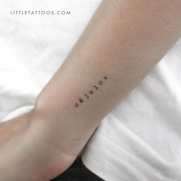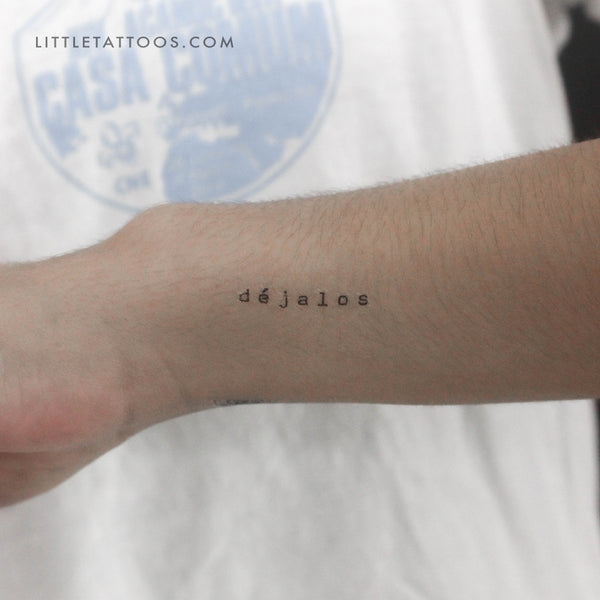 Set of three typewriter font style 'déjalos' temporary tattoos.