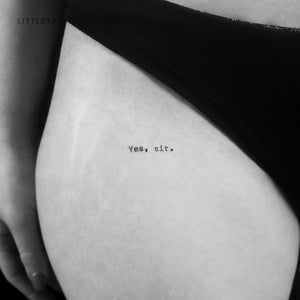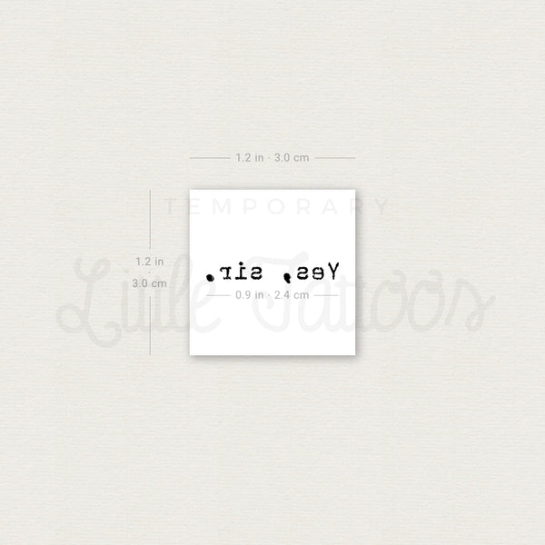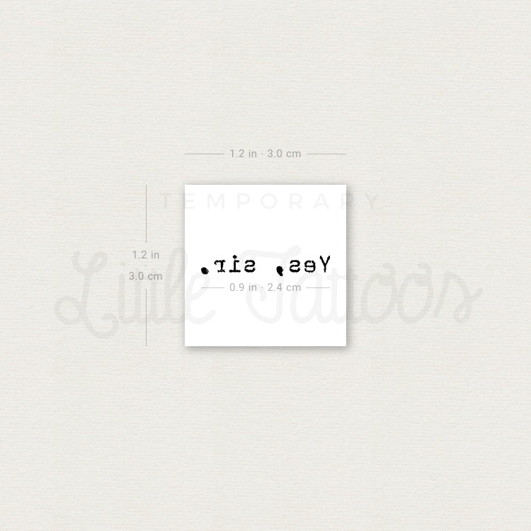 Set of three typewriter font style 'Yes, sir' temporary tattoos.